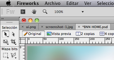 Para Fireworks, he creado los siguientes comandos a los que les asigno desde el menú Métodos abreviados de teclado las combinaciones de tecla Control + Tabulador y Control + Mayúscula + Tabulador, respectivamente.